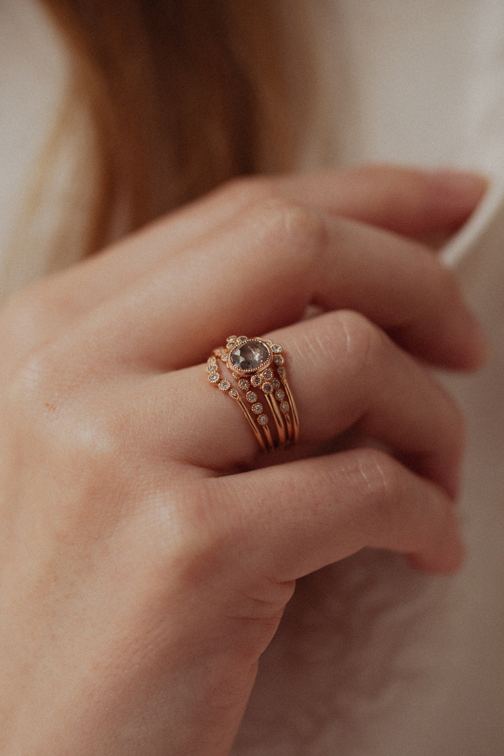 Les alliances créateur et la ligne de bague de fiançailles créateur ont le charme discret de créateur de bijoux de l’Epoque Victorienne. Le choix d’une taille de diamant rosecut, ou encore des saphirs rosecut, confère l’esthétisme si particulier aux collections de bijoux créateur Myrtille Beck Paris. Le savoir-faire et les techniques joaillères de l’atelier Myrtille Beck permettent de proposer des bijoux artisanaux faits mains d’une grande beauté, une ligne de bijoux délicats et des pierres précieuses et pierres semi précieuses colorées pour un moment inoubliable. La gamme de bague en or rose offre chaleur et élégance, tout comme les alliances de mariage pour femmes et les bagues de fiancailles pour hommes.