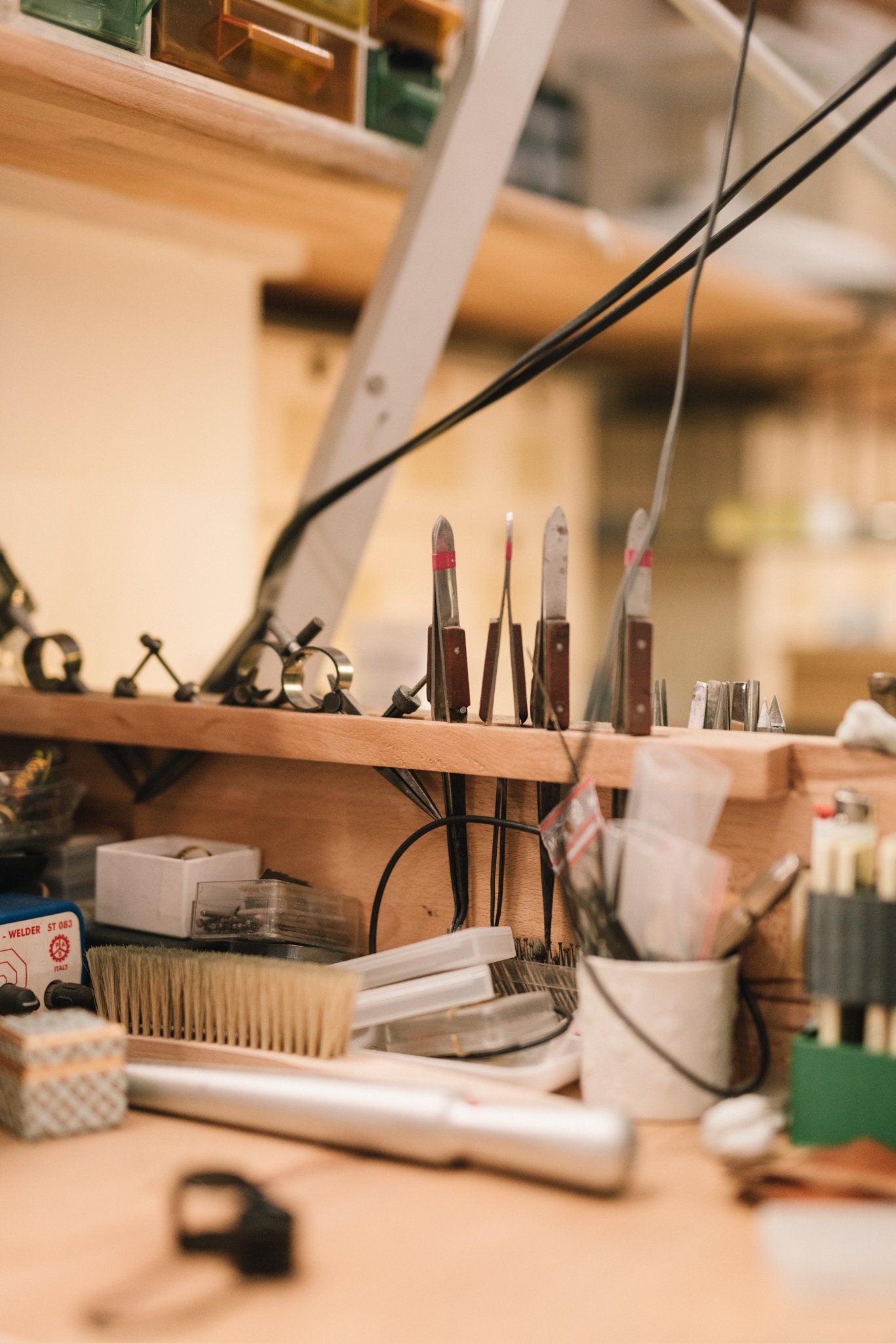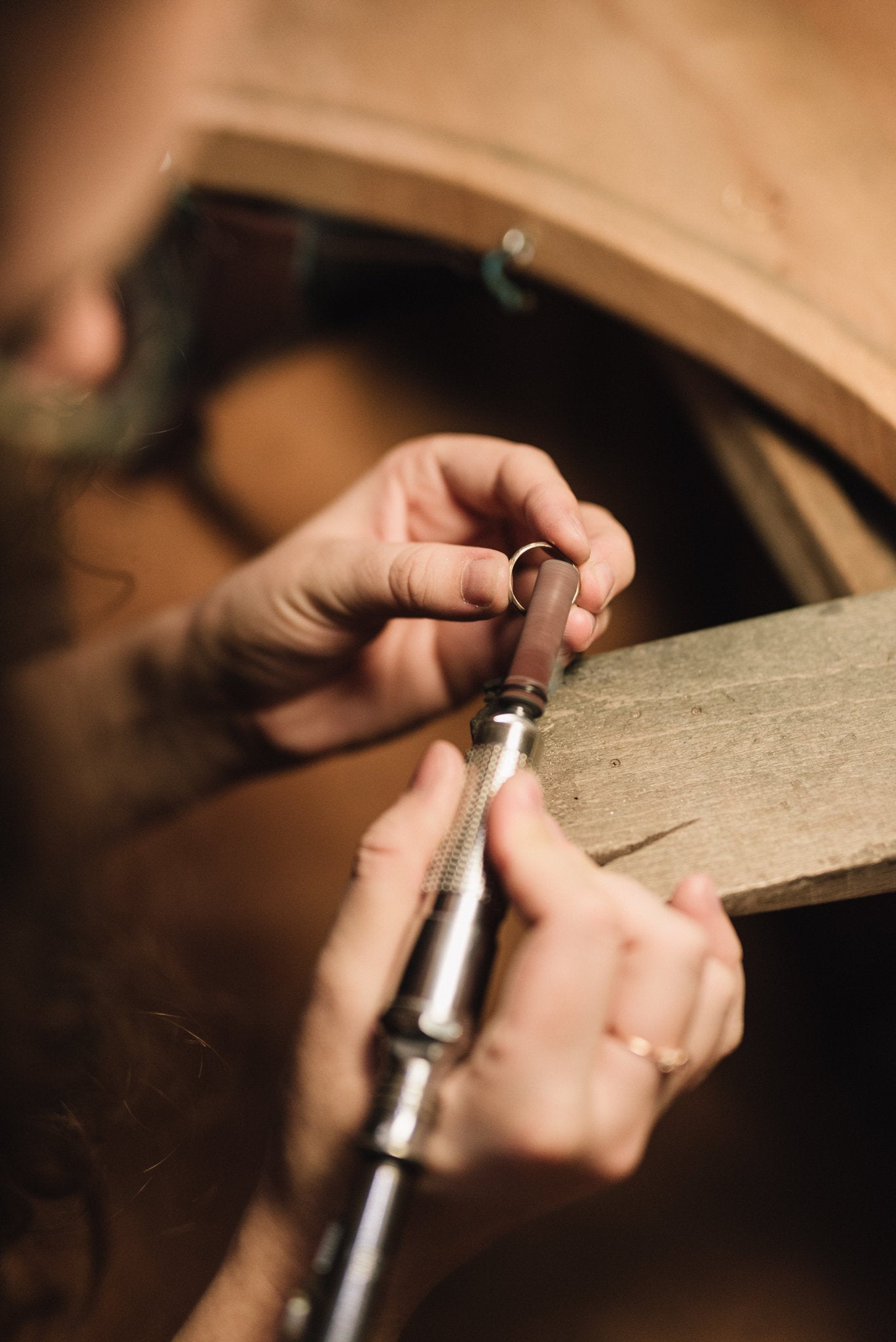 Elle réalise à main levée les esquisses de ses pièces et maîtrise l’ensemble des étapes de fabrication, de la conception, en passant par la réalisation des maquettes cire et métal, jusqu’à la livraison du bijou fini.